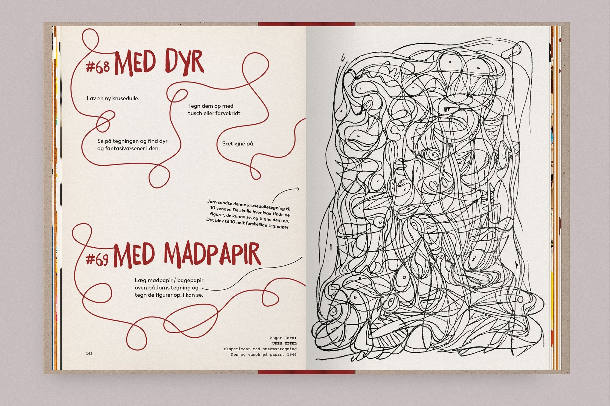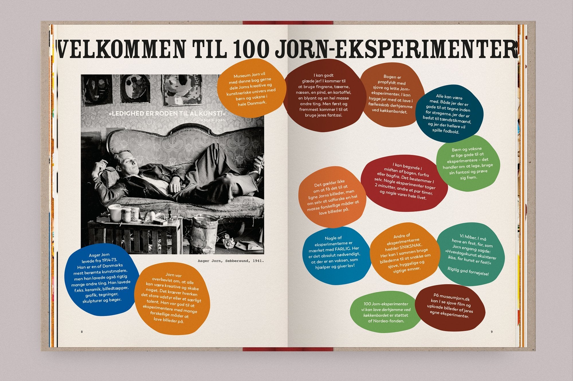 Museum Jorn deler Asger Jorns kreative & kunstneriske univers med børnefamilier i hele Danmark. Bogen ” 100 Asger Jorn · Experiments vi kan lave derhjemme ved køkkenbordet” er udkommet i 130.000 eksemplarer & gives som gave til alle børn, der går i 1. klasse i 2018 og 2019.