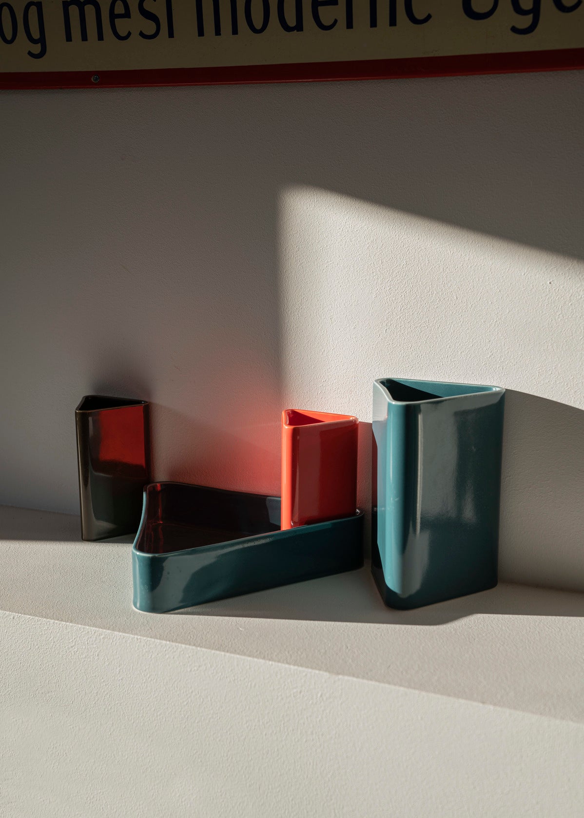 Canvas starting point was one of raawii’s core guiding principles: creating a space for creativity and cross-disciplinary collaboration. The collection welcomes playful improvisation and endless combinations. Created with no pre-set purpose, the three items – small container, larger container and centrepiece – can be mixed and matched, to host anything from flowers to kitchen utensils.