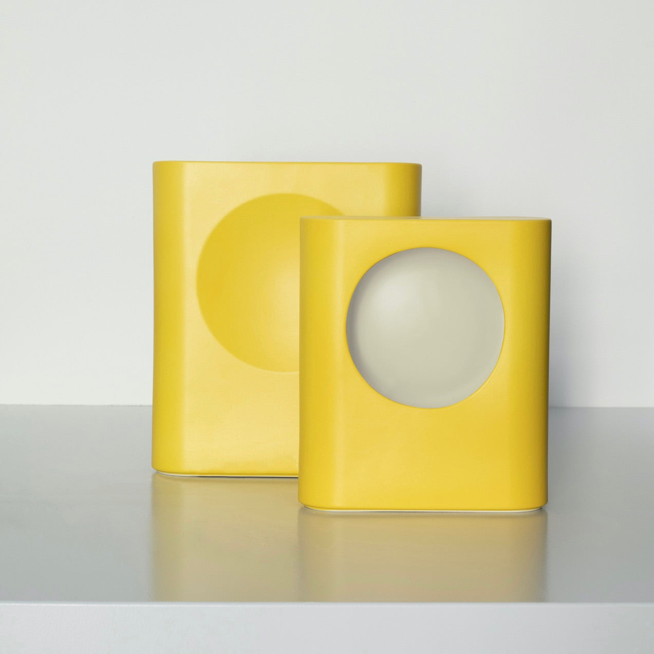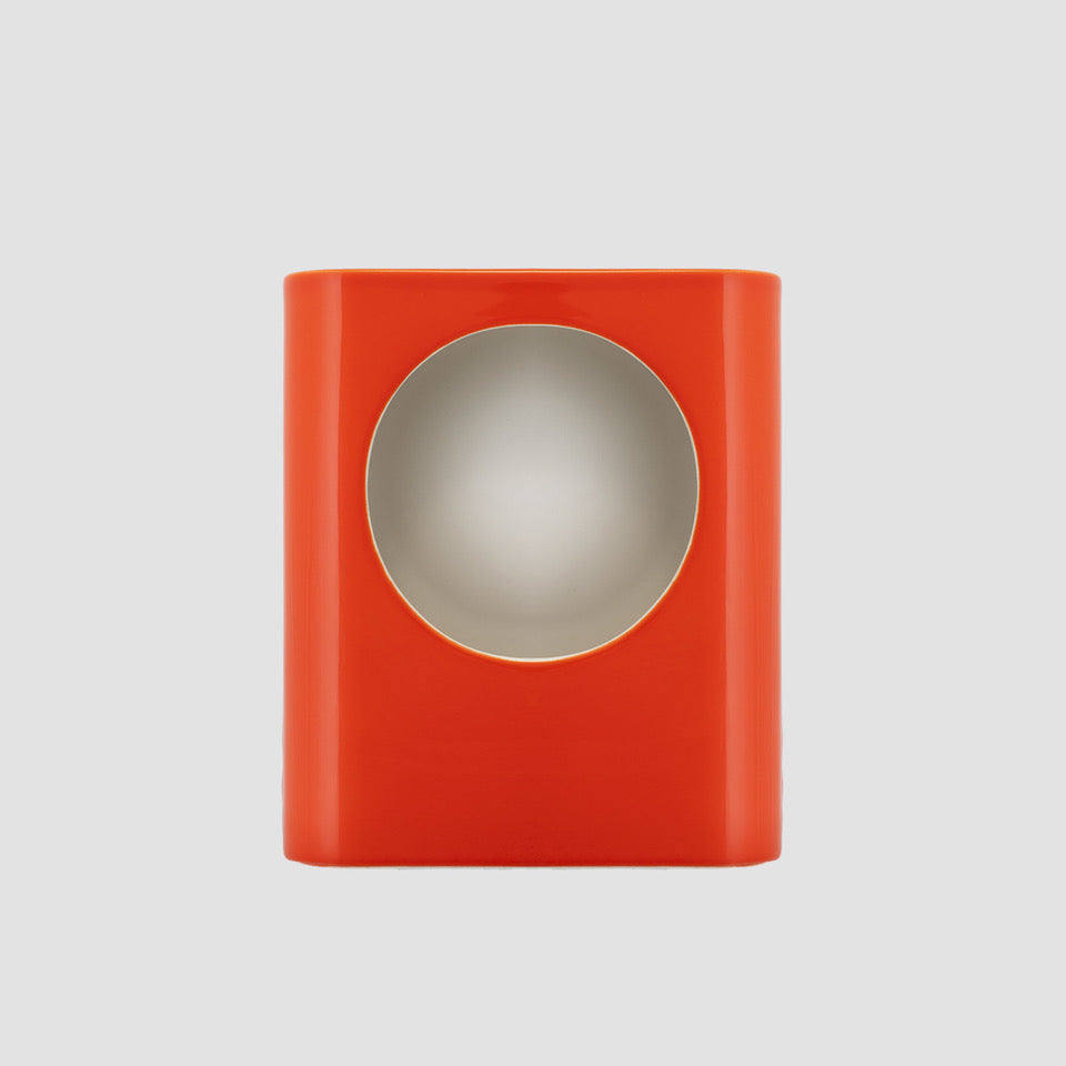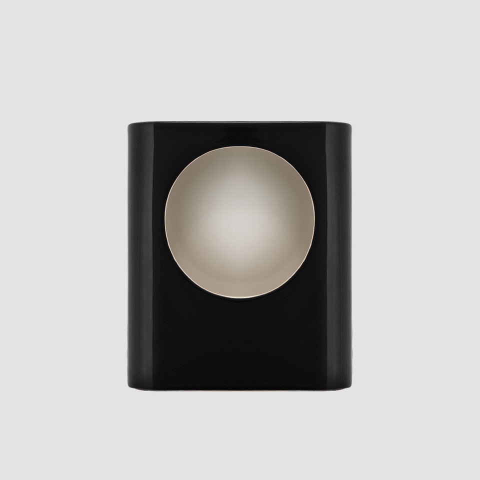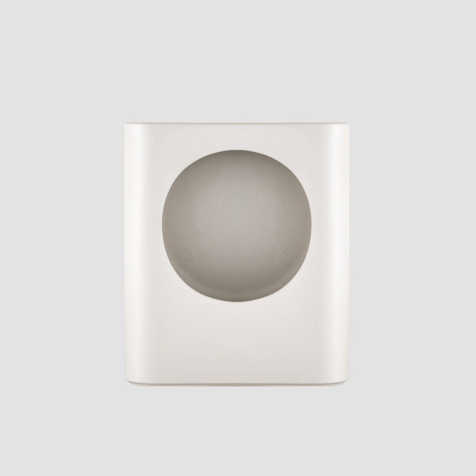 Inspired by the shape of vintage pocket Morse lamps, SIGNAL is a single volume softened on the sides, characterized by a central carved dome that doubles as opening on the opposite side, letting the light shine through a subtle gradient.