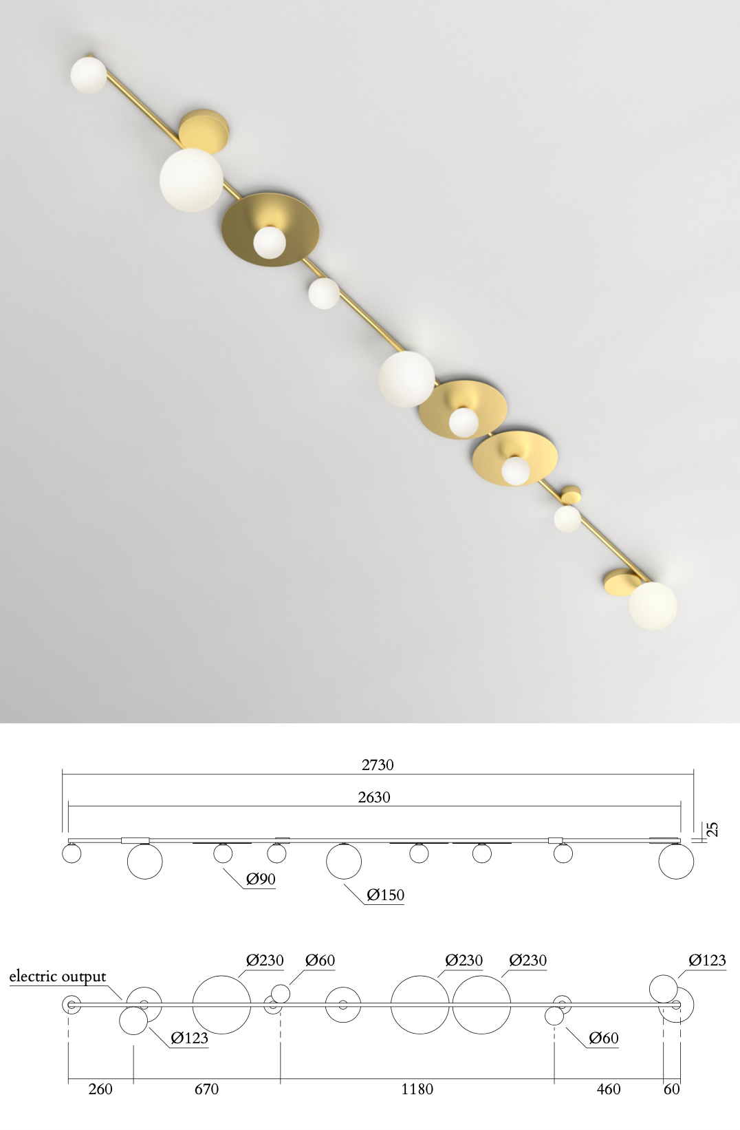 Line, Globes & Discs Brass 320 Ceiling Light 9+ Globes