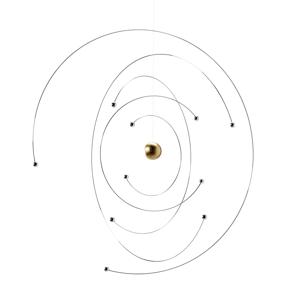 To celebrate the 100 years of the revolutionary Niels Bohr Atom Model, we have, in cooperation with the Niels Bohr Institute of Copenhagen, created this beautiful mobile, which will inspire & decorate any home.