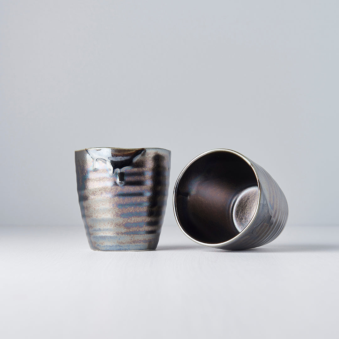 Ceramic Made in Japan · Mug with Patchy Edge, metallic black will improve your favourite hot-drink instantly. Elegant in rustic & modern kitchens.