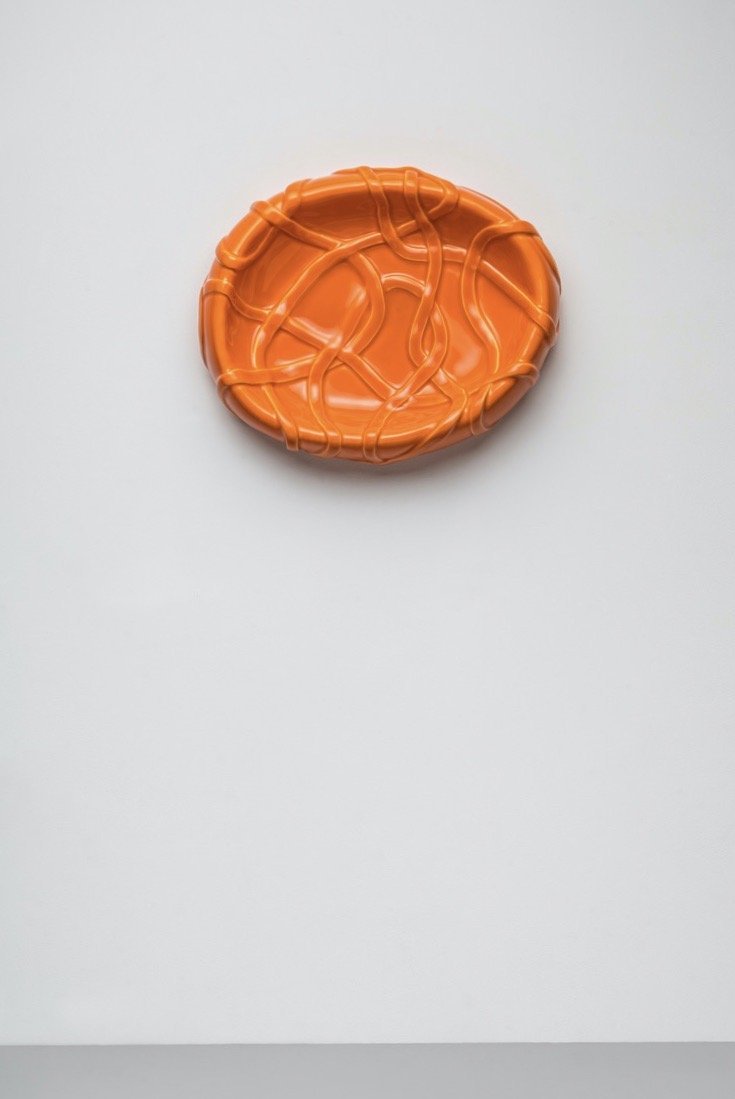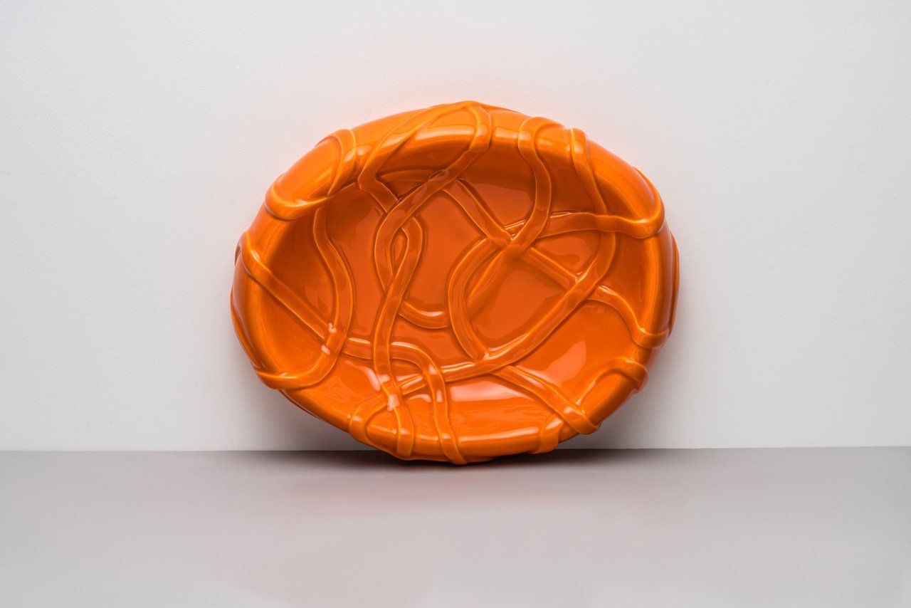 Persimmon Orange Centrepiece Platter ʻThe Absurd Made Fleshʼ by Michael Kvium