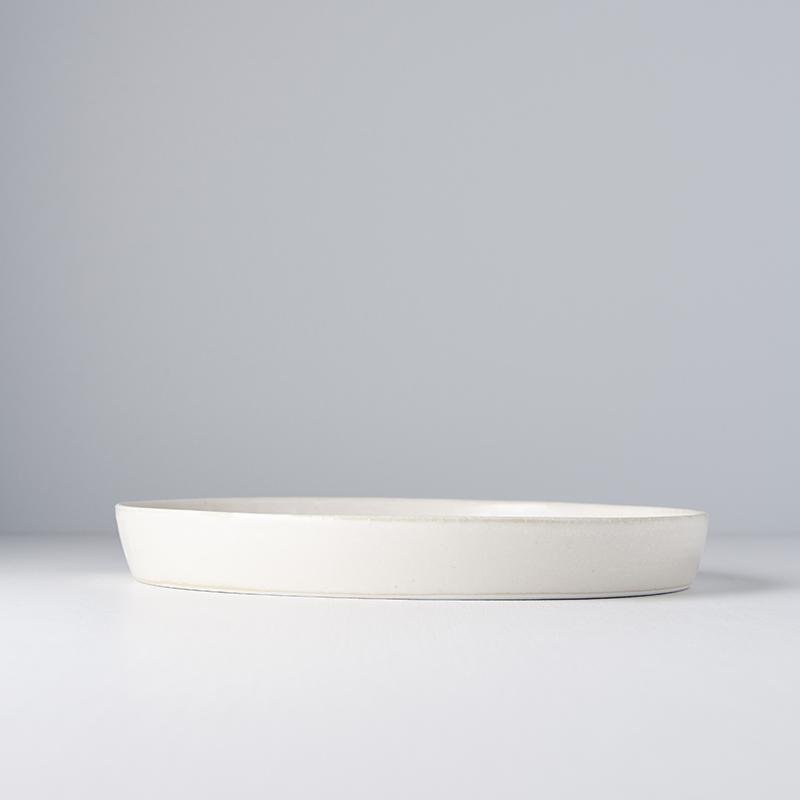 Ceramics Made in Japan · This off-white plate with high rim is a classic mix of beauty & style.