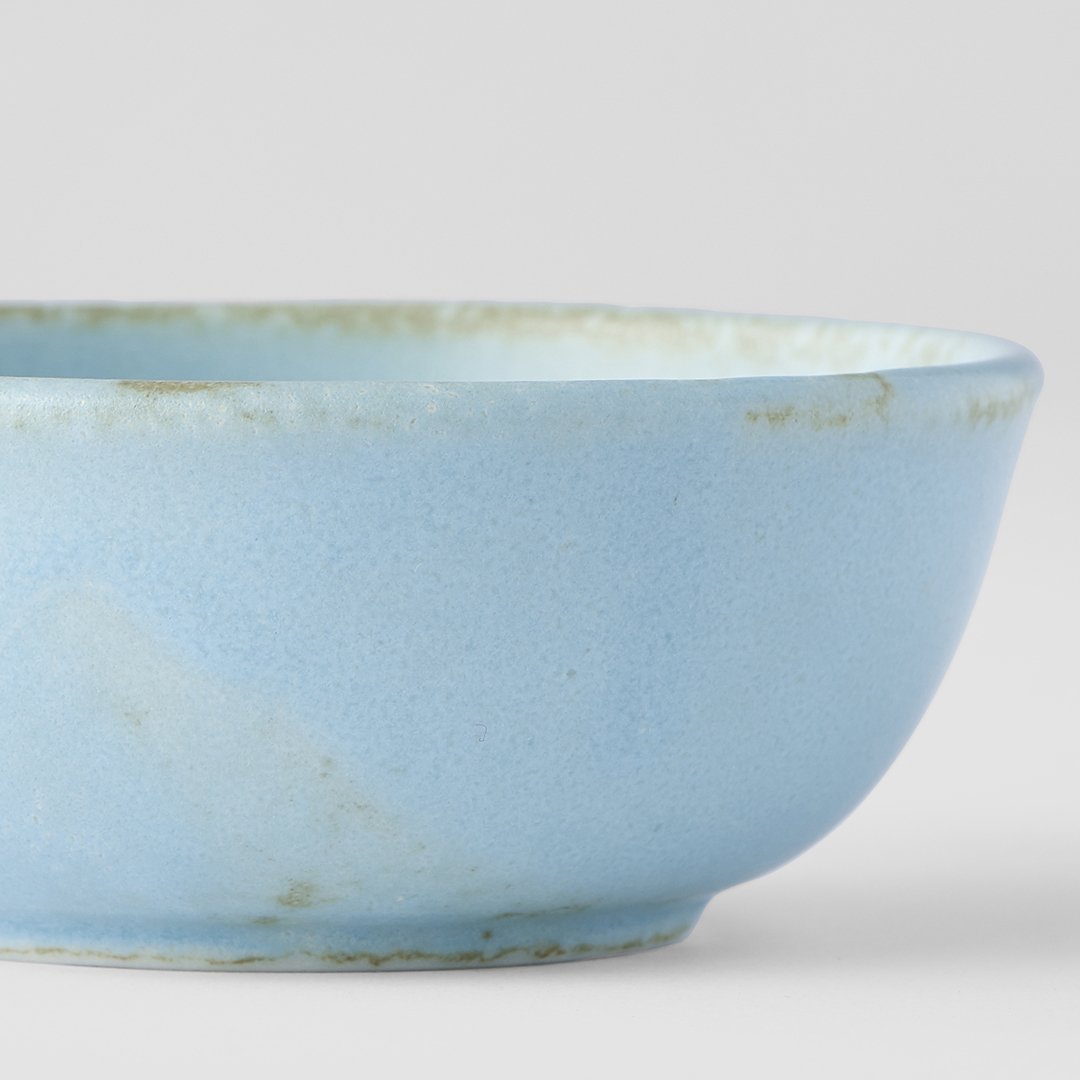 The light blue glaze shows white & brown tones in the glaze meaning each dish is unique.