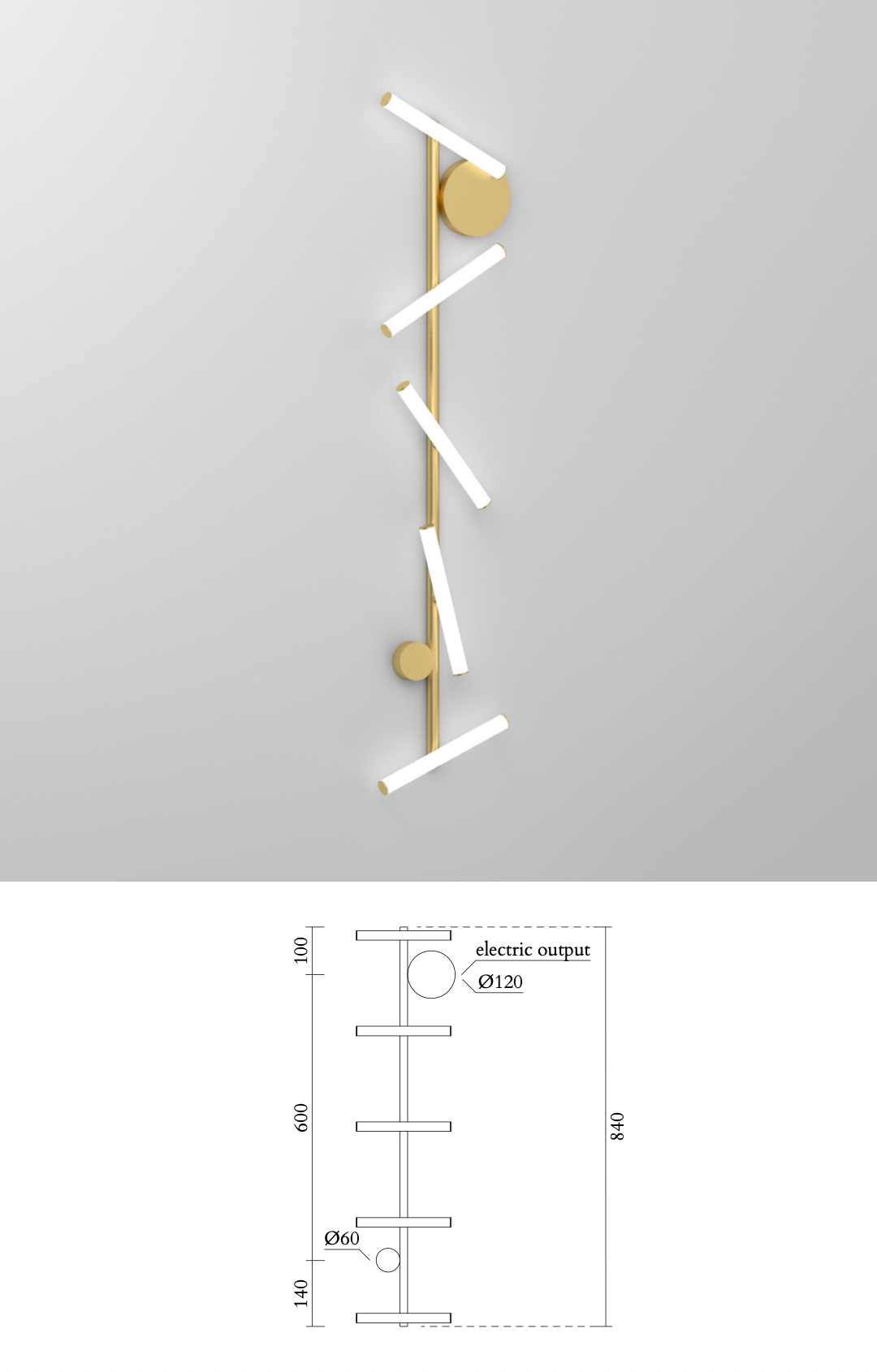 Brushed Brass; Powder coated metal; Nickel; White acrylic