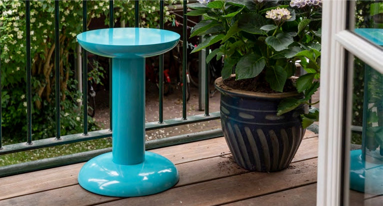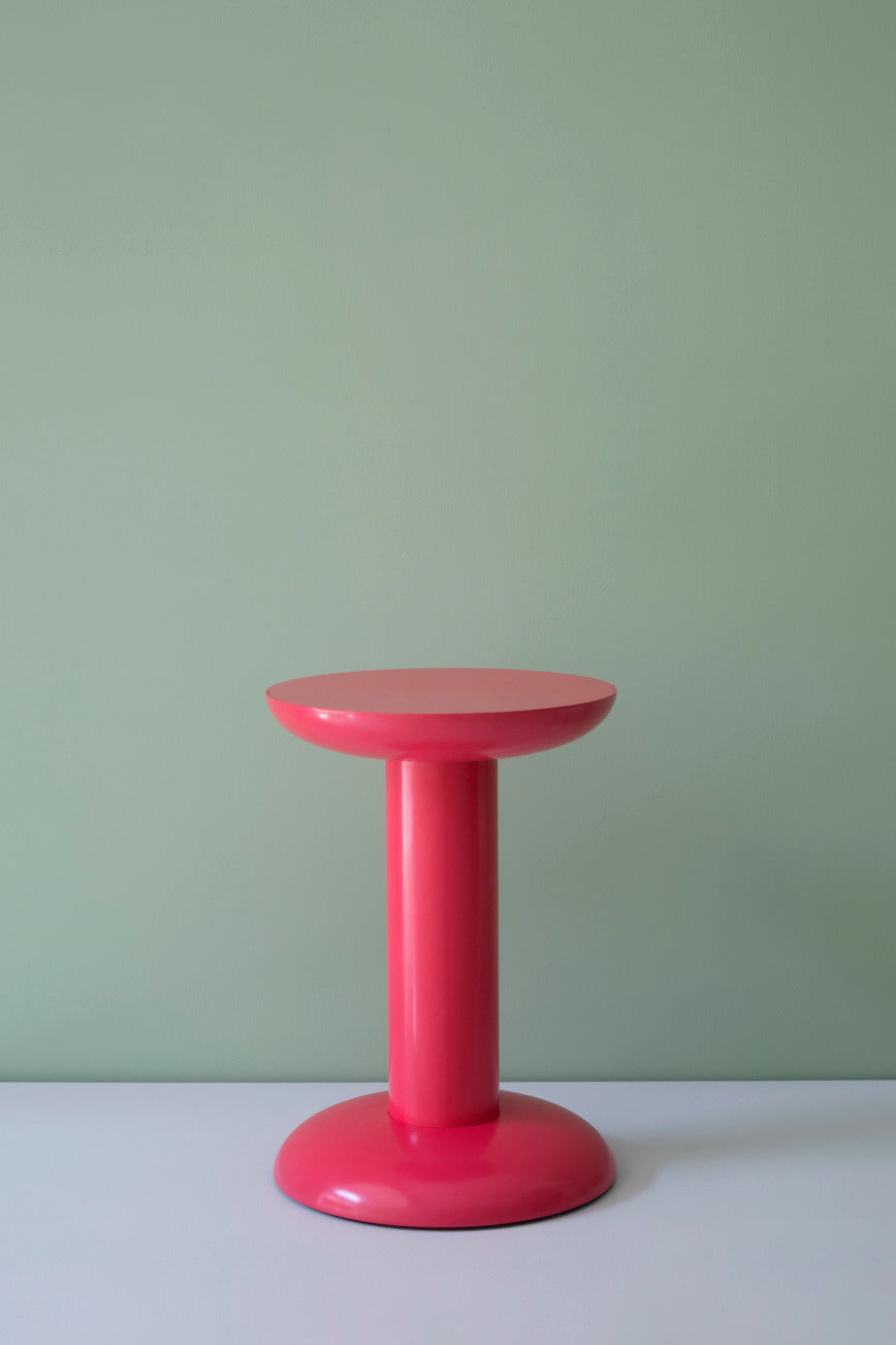 “Thing is a multi-use object, a stool, a small table – whatever it finds use for. It is made of 100% recycled aluminium with the exception of the silicone feet. Once the various parts are bolt- ed together it can be used both indoors and outdoors - and even be left in the rain.”