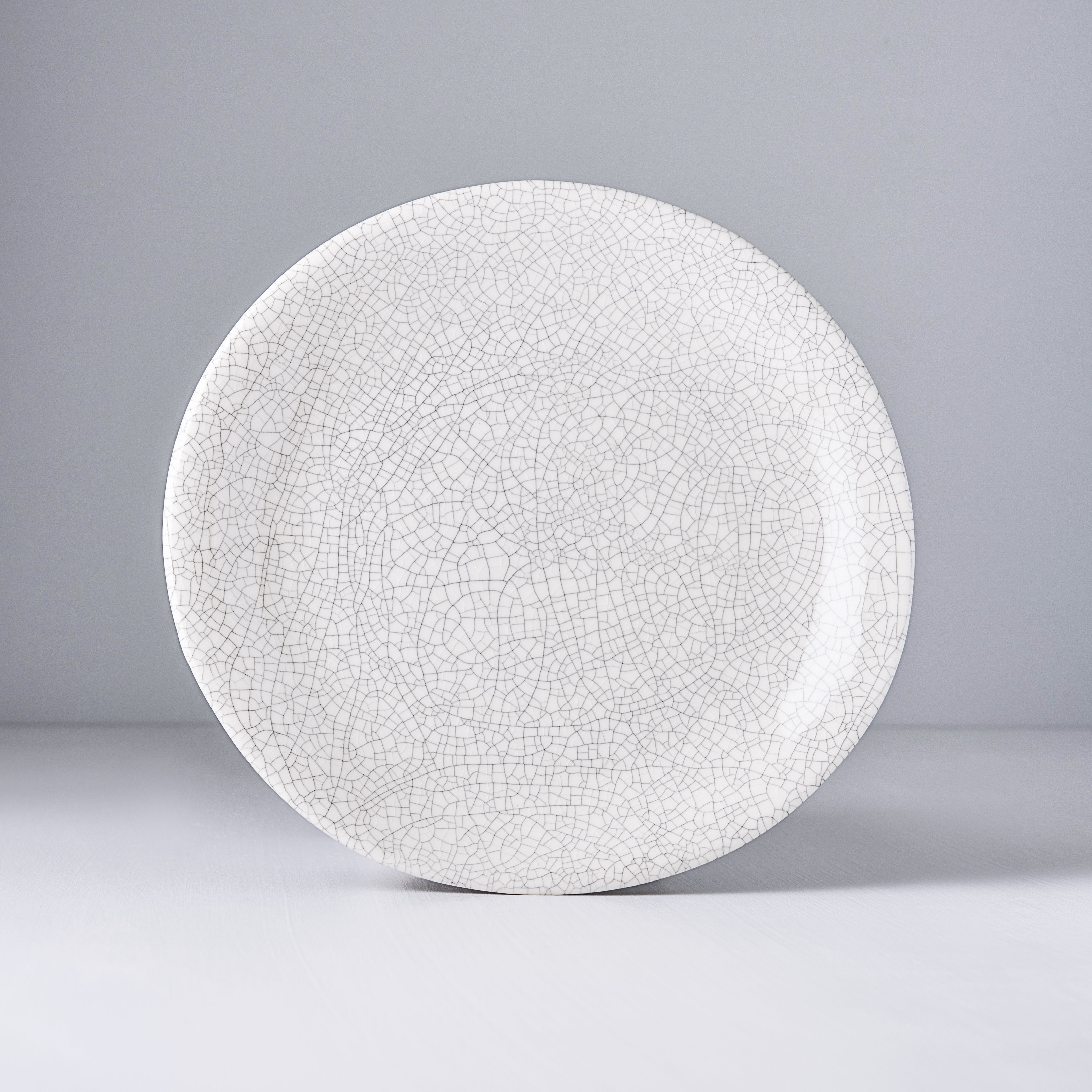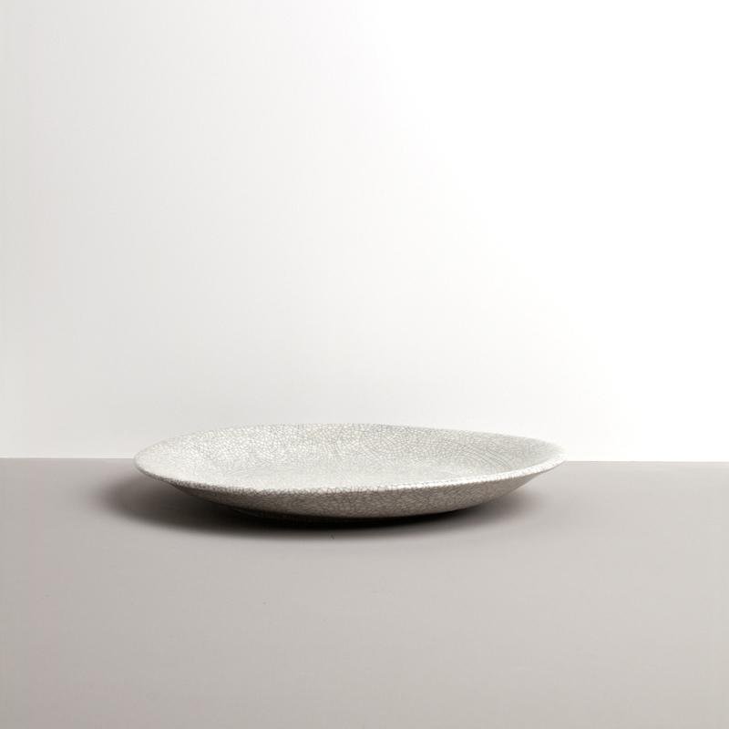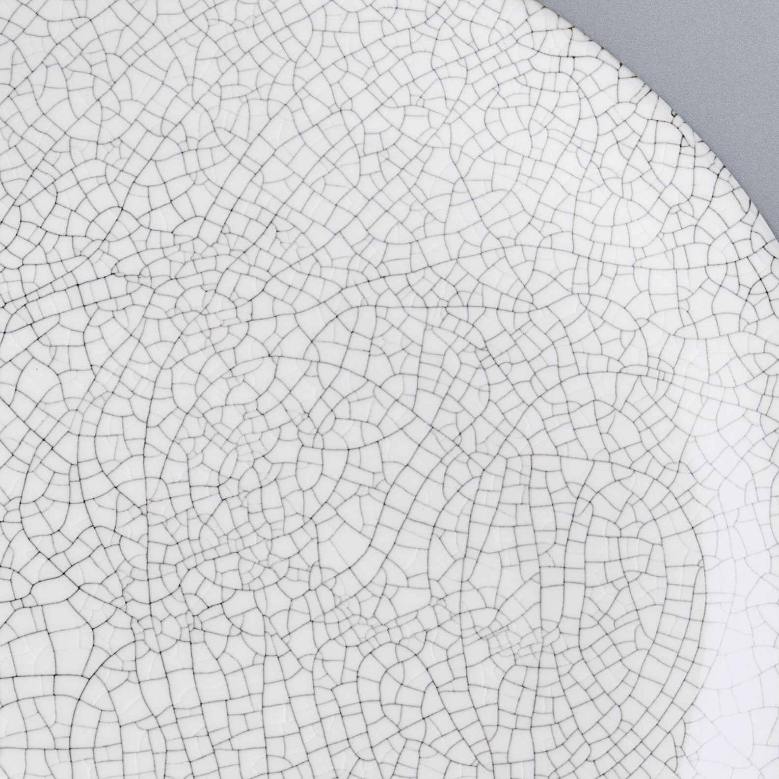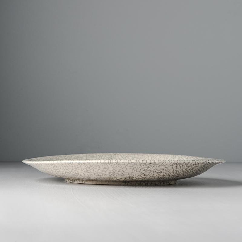Ceramics Made in Japan · Large round plate in white & grey colour with a special effect, which looks like a cracked glaze. The plate has uneven shape — each design & piece is an original.