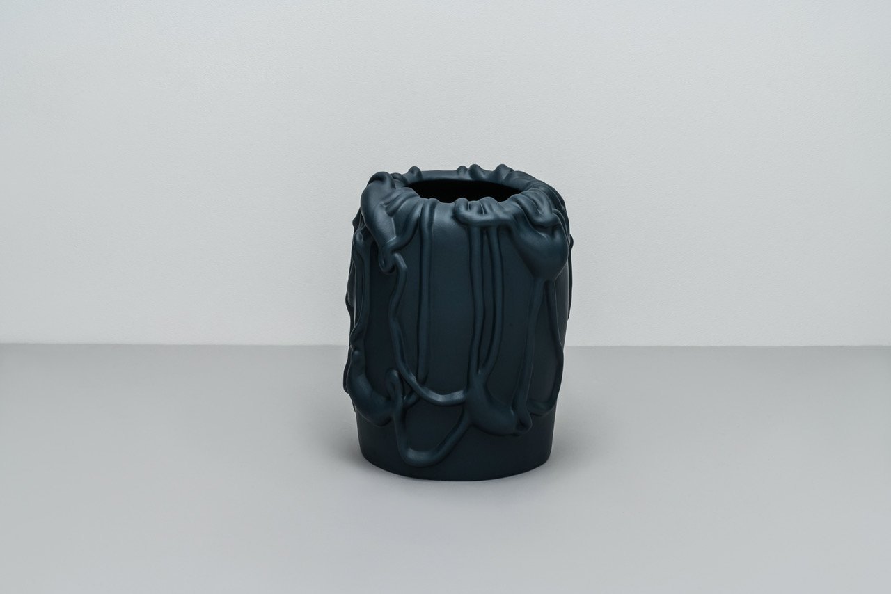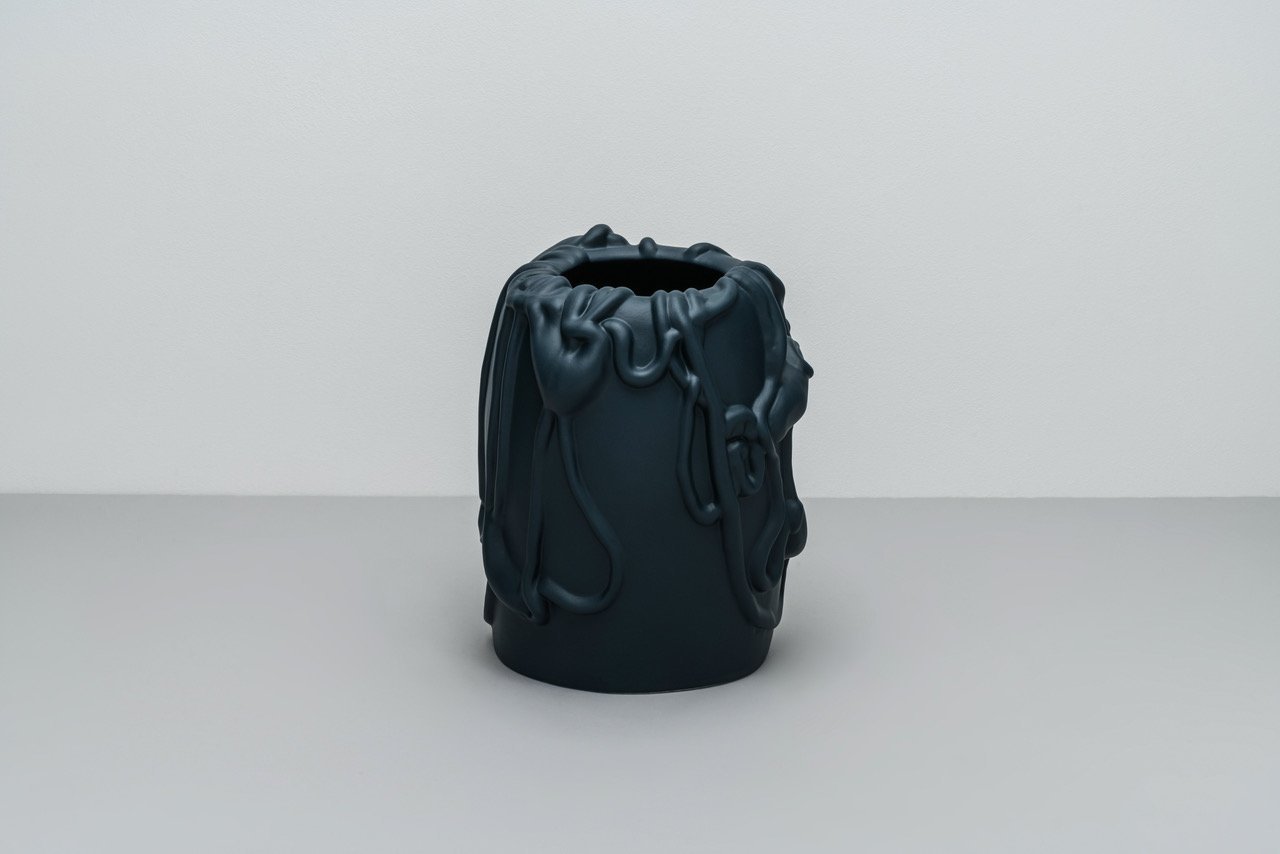 Consumed by the freedom of the exploration of a new medium, the first two of Kvium’s three design pieces completed for 'Raawii' were at first meant only as experiments. However, such liberation resulted in not only one but two final works, a vase (available in seven colours) and platter centrepiece (available in three colours), themselves revealing an essential element of the artist’s iconographic unconscious.