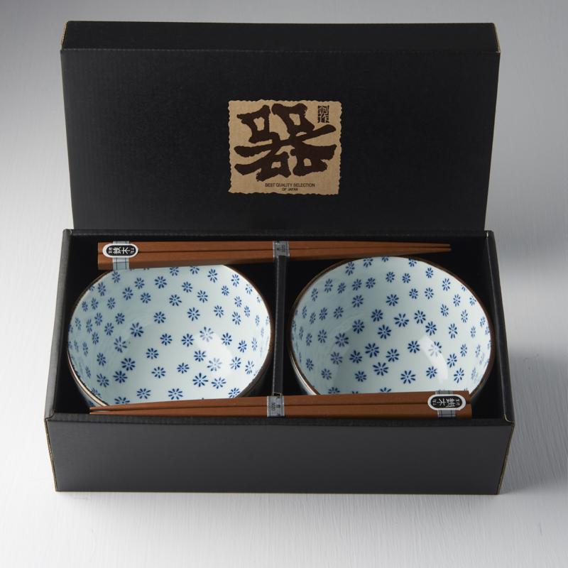 The bowls perfectly match each other with modern snowflake design, which you will love. The set also includes two sets of chopsticks. Everything is wrapped in a sophisticated black box set that looks very elegant.